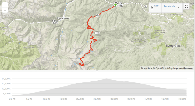 We woke up very early in Golden, Colorado. After a beautiful drive to Idaho Springs, the three of us were pedaling by 7:31am. The morning air was crisp and the sky free of clouds. Weather reports called for 20% chance of thunderstorms after 2pm but we hoped for dry weather through the afternoon.