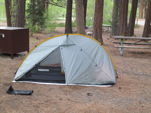 We drove to a campground east of Tioga Pass, set up our Tarptent Double Rainbow and sealed its seams.. We had enough day light, it was relatively warm with no wind, so why not? Twenty minutes later the job was done.