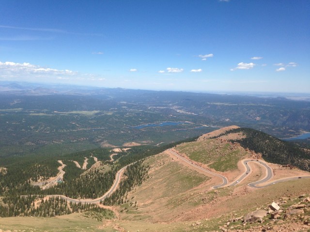 Cars gave us tons of room and trucks switched lanes to pass us. After a 4.5 mile loud but uneventful ride on the highway we turned left toward the Pikes Peak Toll Road.