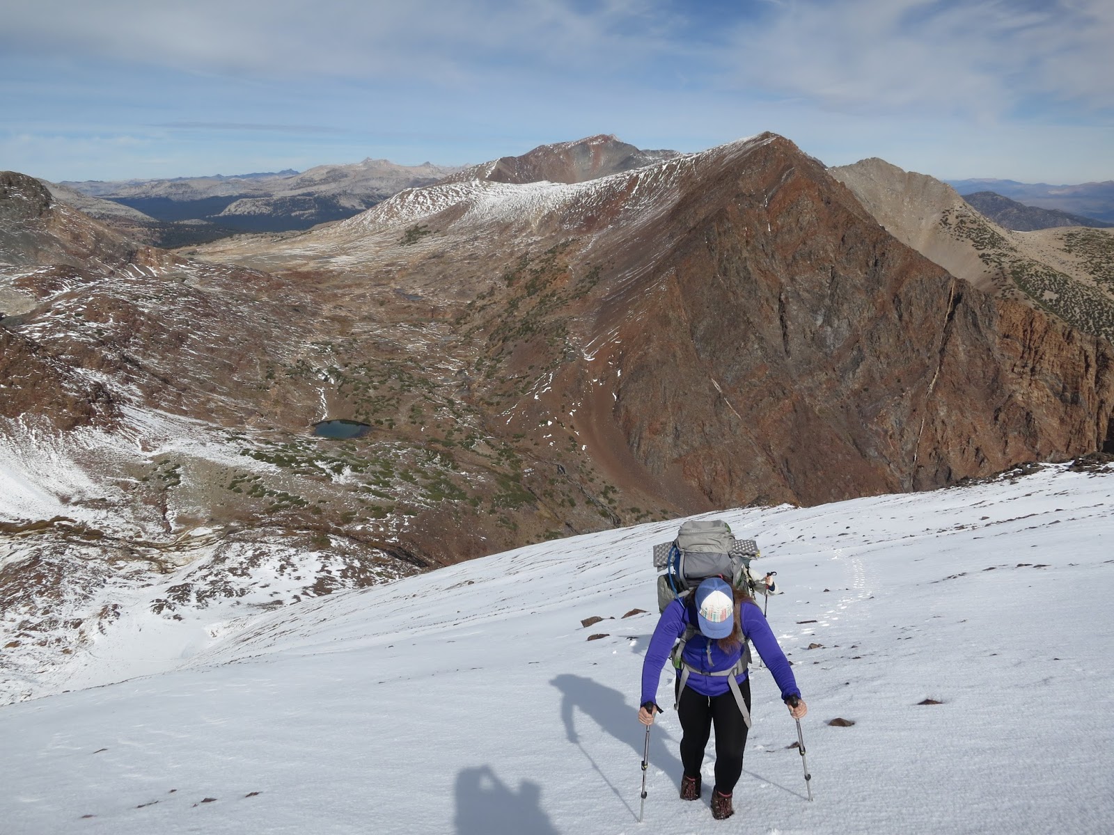 On the long downhill to Alger Lakes, we took off most of our layers and couldn’t believe how different the landscape was on the south side of Koip Peak.