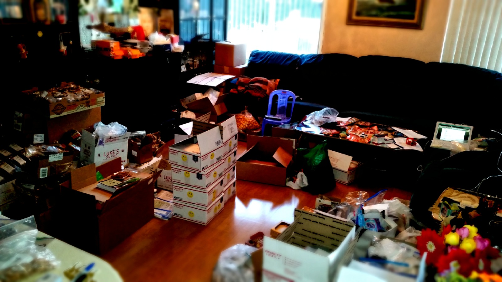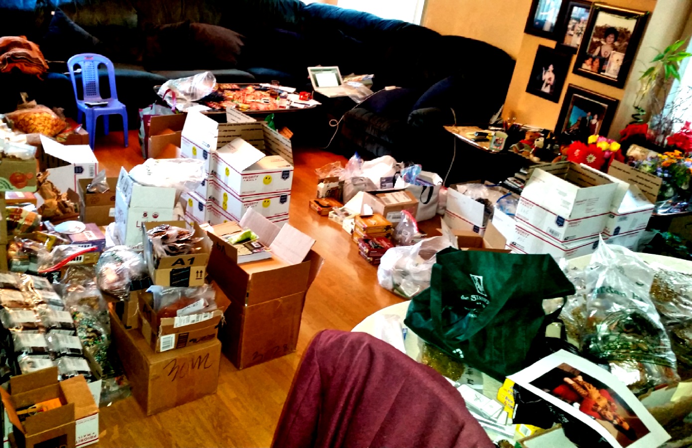 Below are a few pictures in which I tried to capture the enormity of the food we have amassed the last few months, and the boxes we have to squeeze them into.