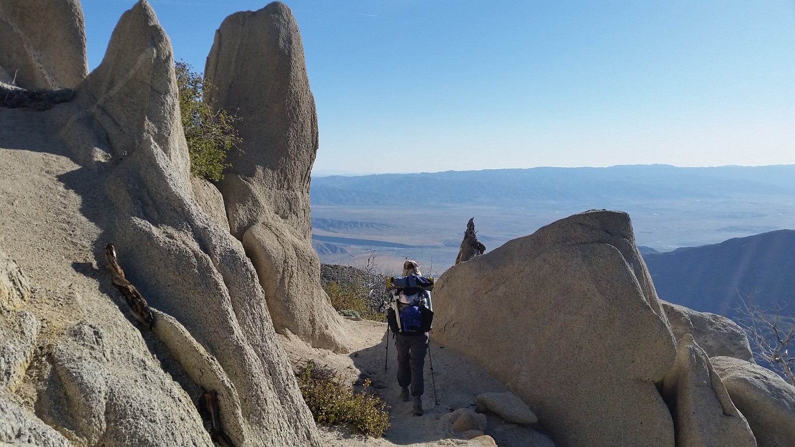 We woke up to see the sun slowly lighting up the face of Mt. San Jacinto. Laurie had taken a Benadryl the night before and was slow to rise. For the first time Andy was packed and ready before her. I guess next time he doesn’t need the 10 minute handicap. But he does need to work on his celebration dance 😅