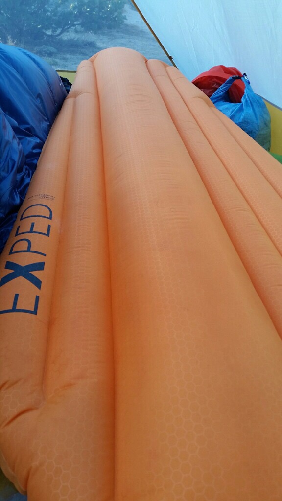A few mornings prior Andy was sitting up stuffing his sleeping bag when his pad popped. Initially neither of us knew what had happened. On closer inspection we noted that one of the baffles had come undone. The pad didn’t deflate completely, but with one big lump in the middle of the pad, it wouldn’t be very comfortable to sleep on. We sleep on Exped hyperlite pads. They are super comfy but apparently not super resilient.