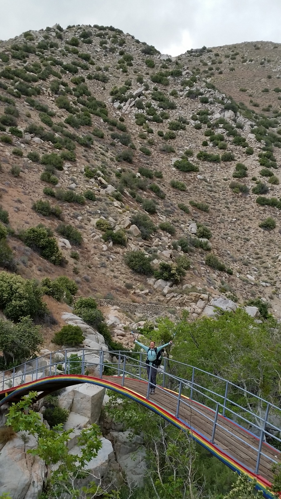 We crossed over a rainbow bridge and continued to walk on a neatly carved trail along the side of the mountain. As we got closer to the Mojave Dam the amount of grafiti increased.