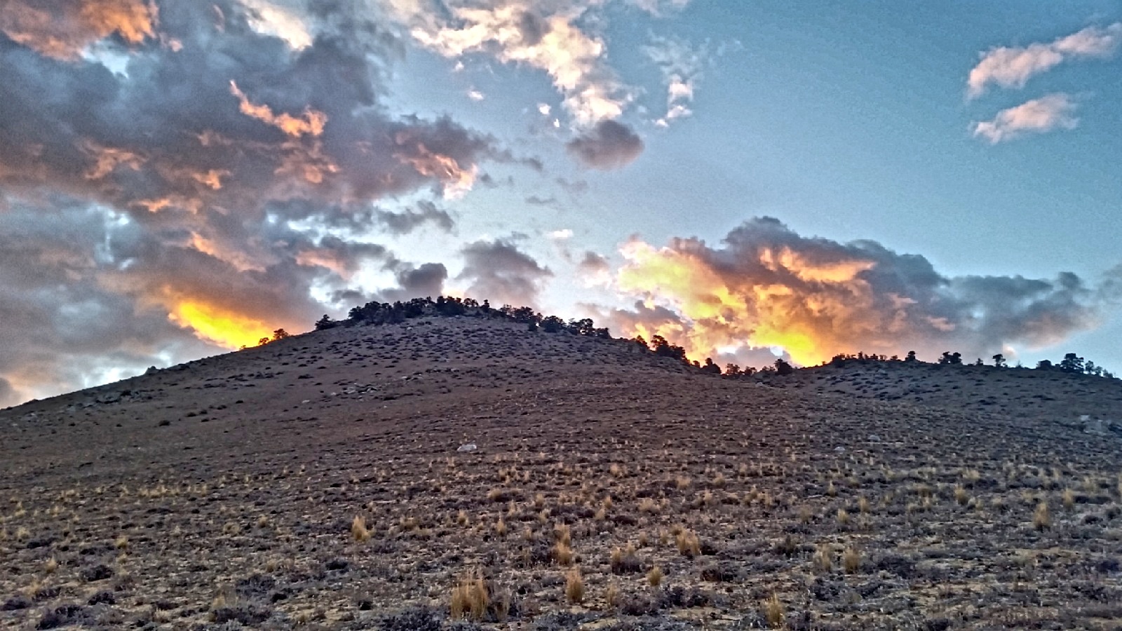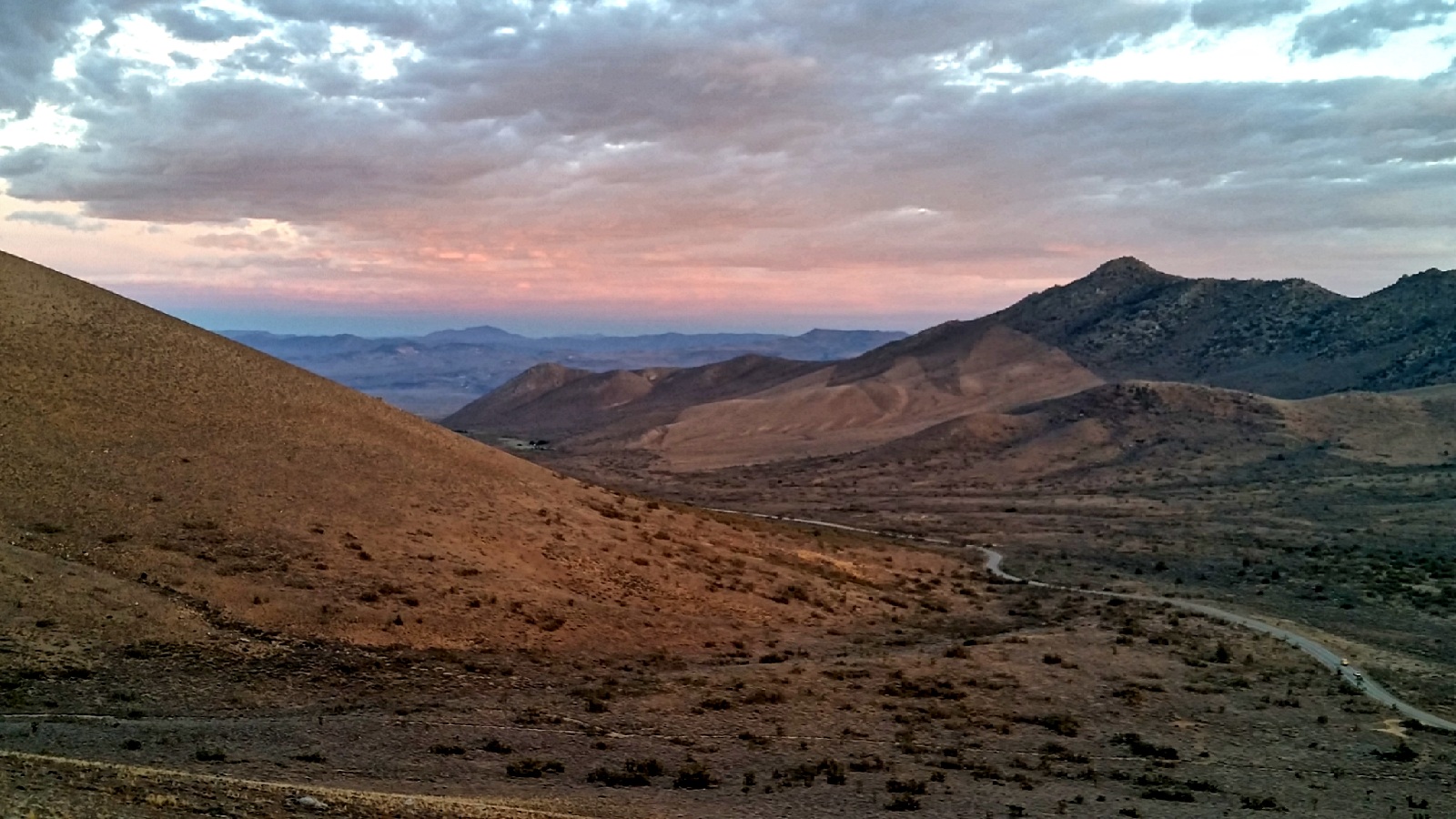 We walked slowly as the sun faded. The alpine glow illuminated the desolate desert mountains around us. The clouds reflected a strong pinkish- orange glow. It felt magical.