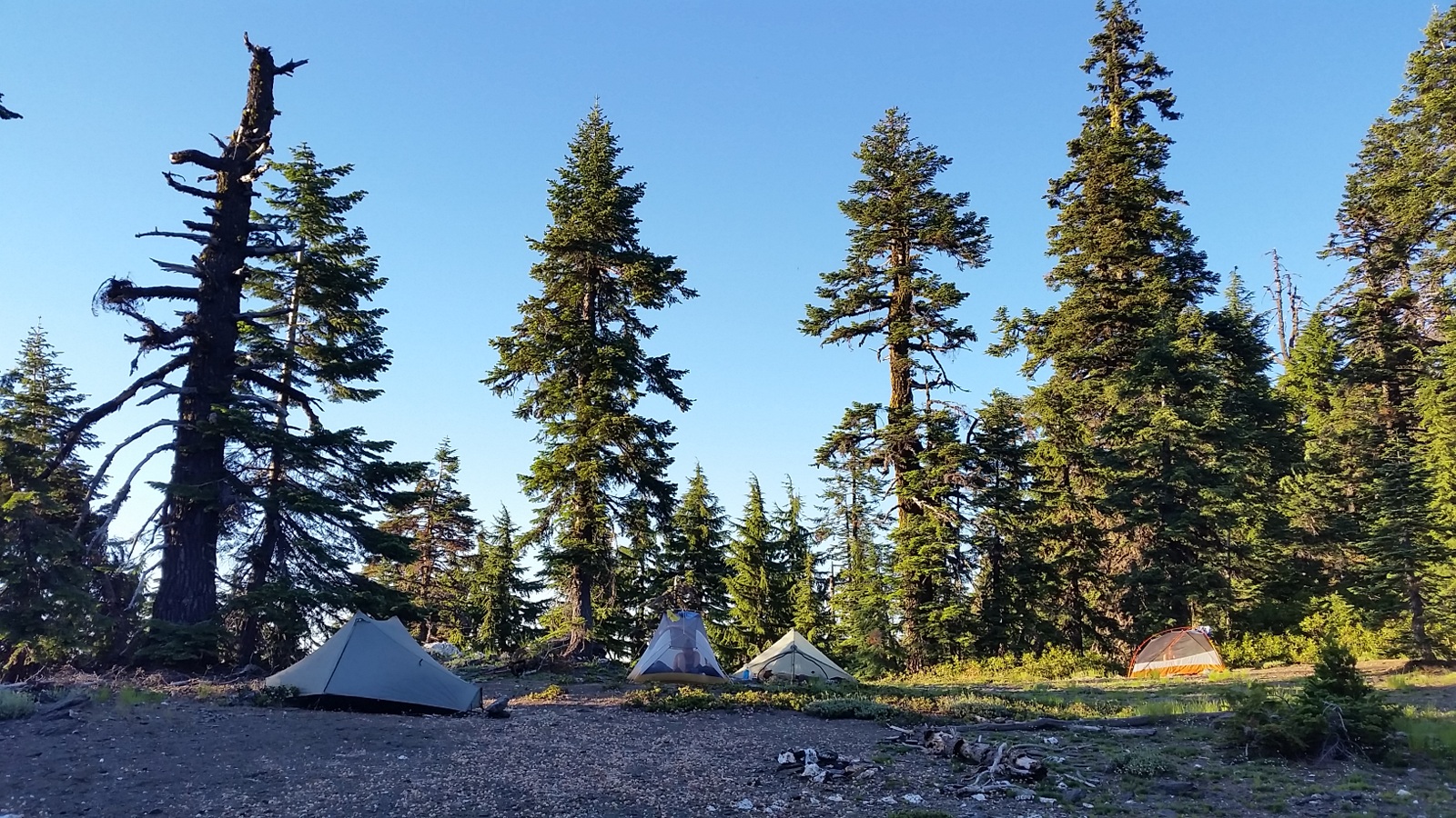 After climbing over 15 downed trees in the last half mile, we got to camp around 6 pm. This is the earliest we have made it to camp in a while and it made us giddy.