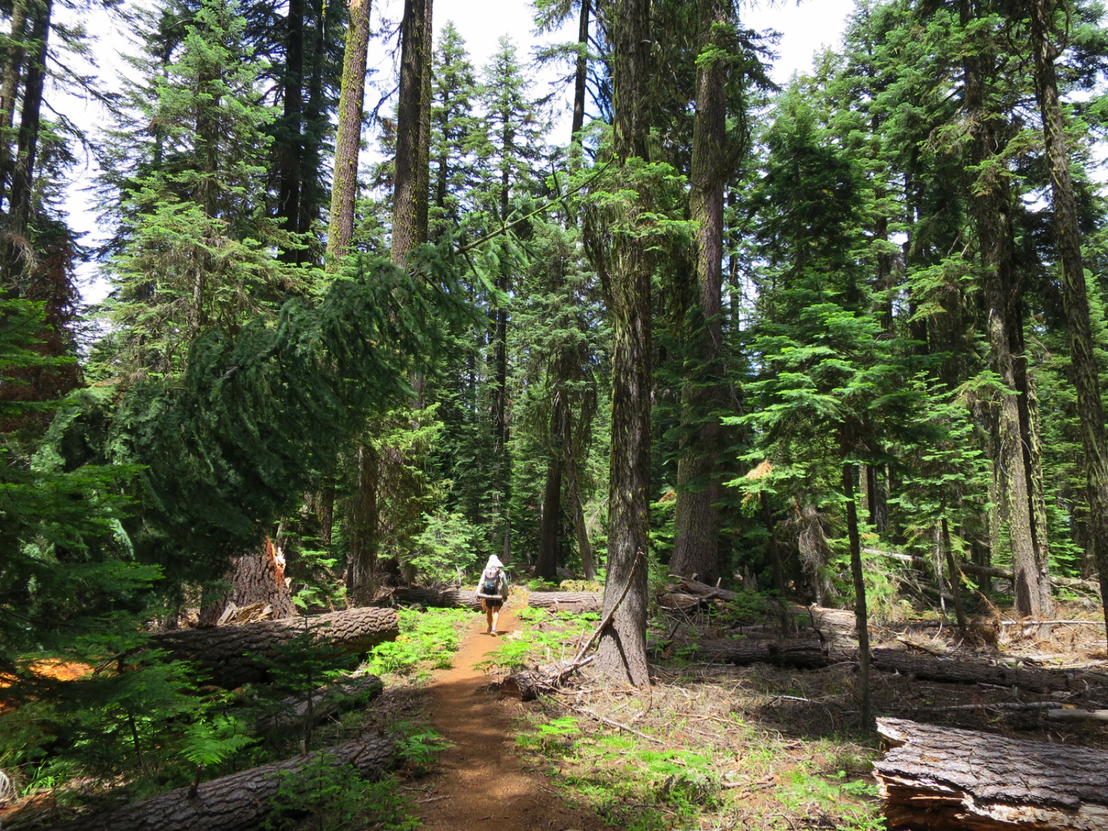 We hiked down the trail, enjoying the soft ground and clear trail. We could tell a trail crew had been through here lately because the wood chips looked fresh and we could smell the freshly cut trunks.