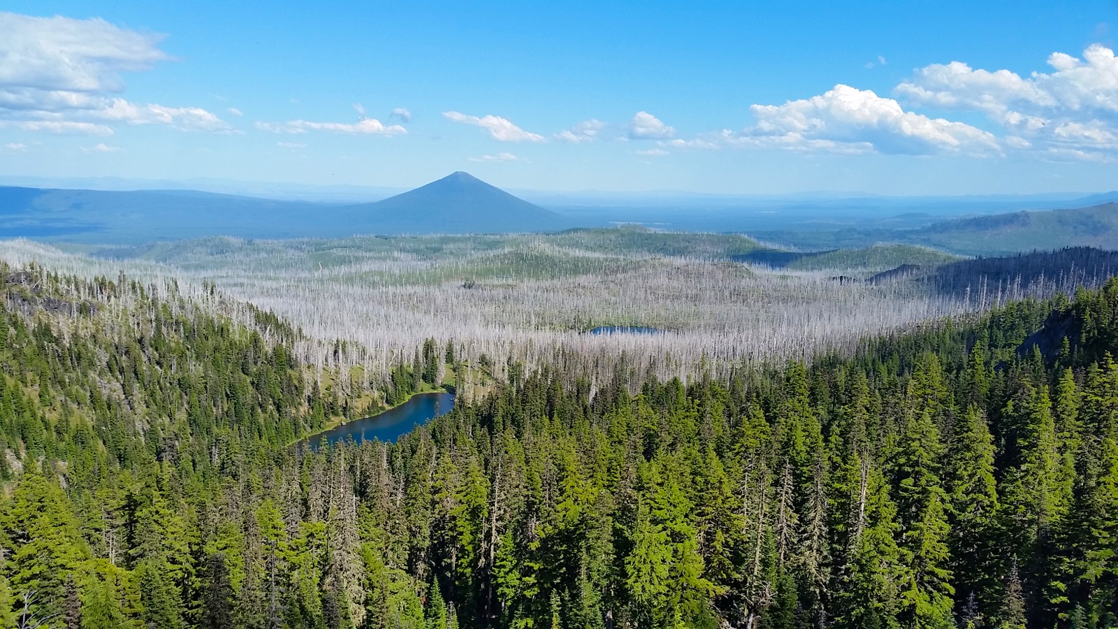 The burn area was HUGE! Once on a ridge below Three Fingered Jack we could see far and wide and truly appreciate the immensity of this fire. We walked alongside penstemon and lupine below the bare and scorched trees.
