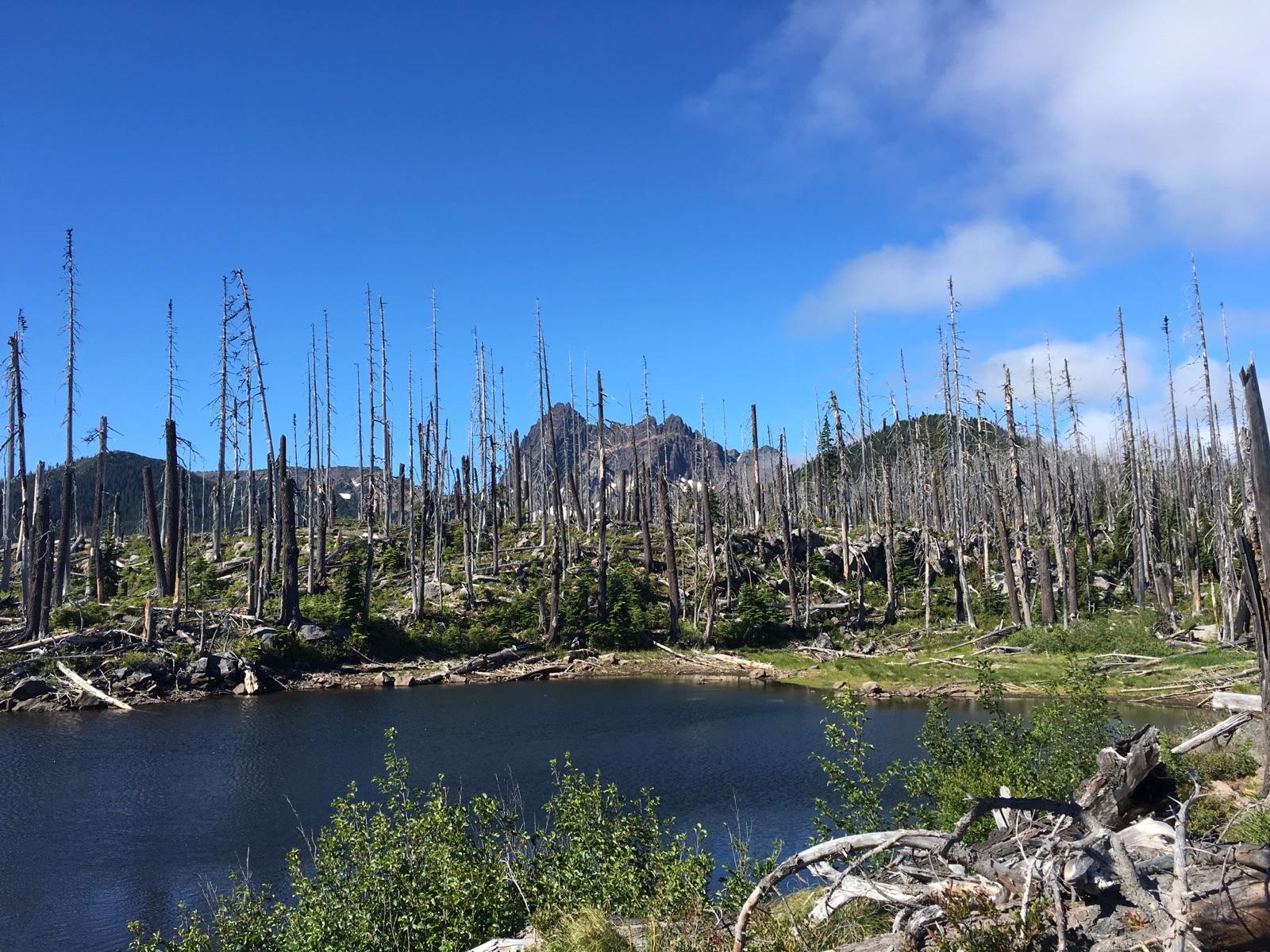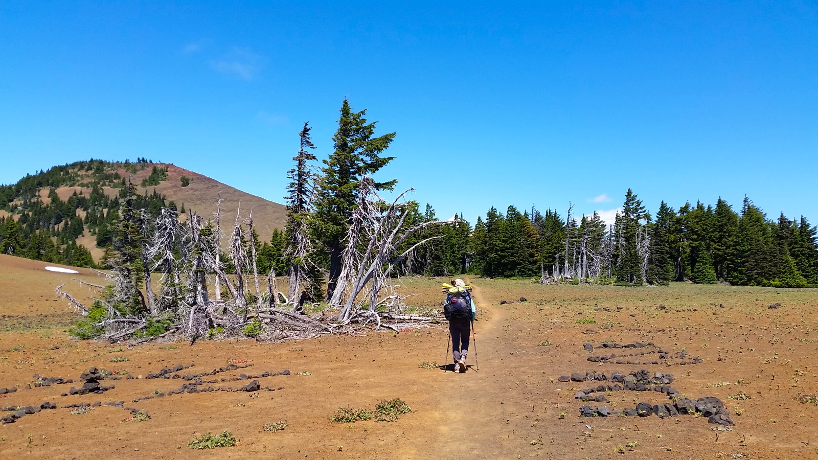 From here we walked back into a burn area. We stayed in the burn area most of the morning, getting water from a pond near Koko Lake. Waldo caught up as we were setting off to hike another 1.5 hours before taking a second breakfast stop.