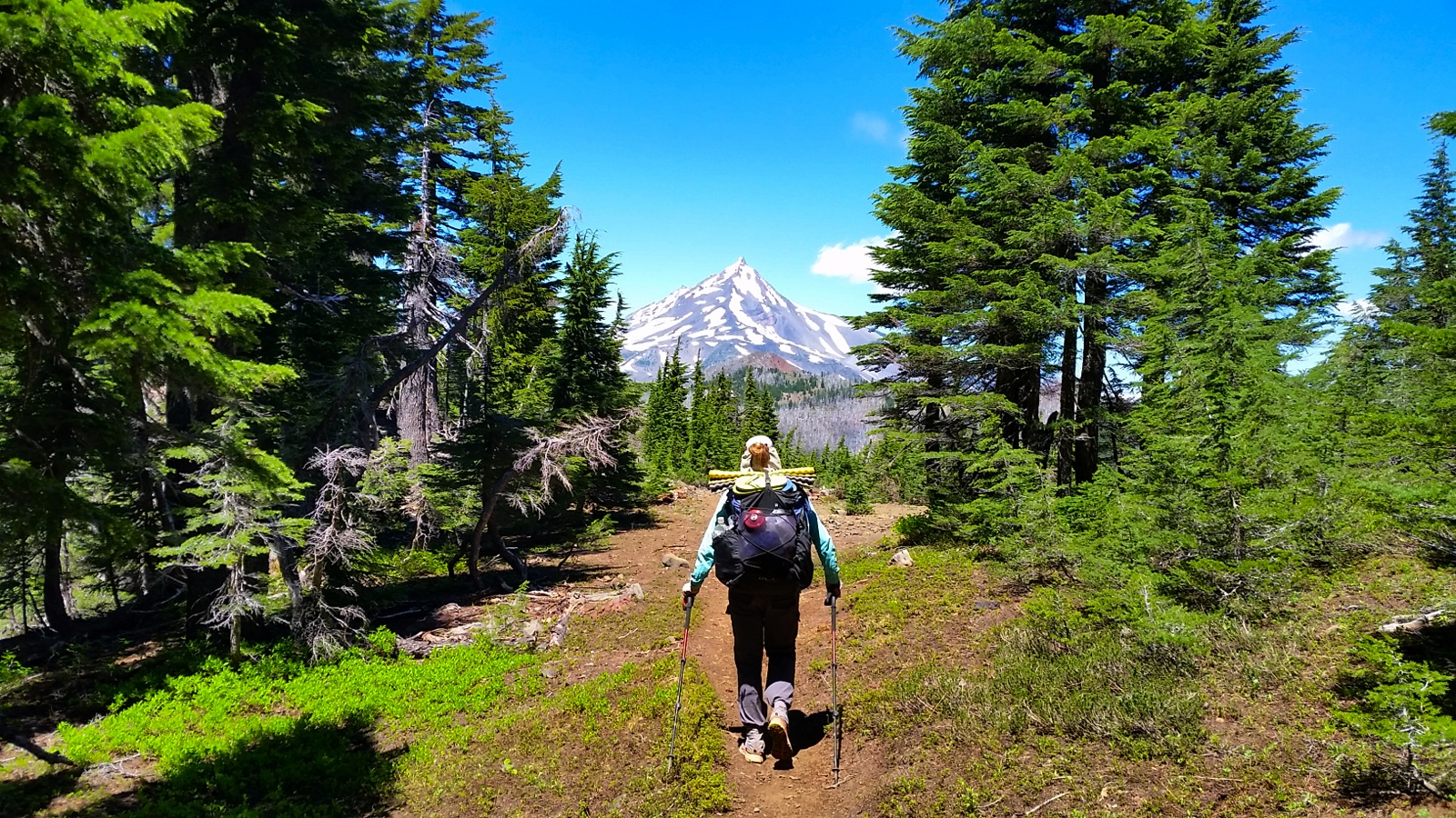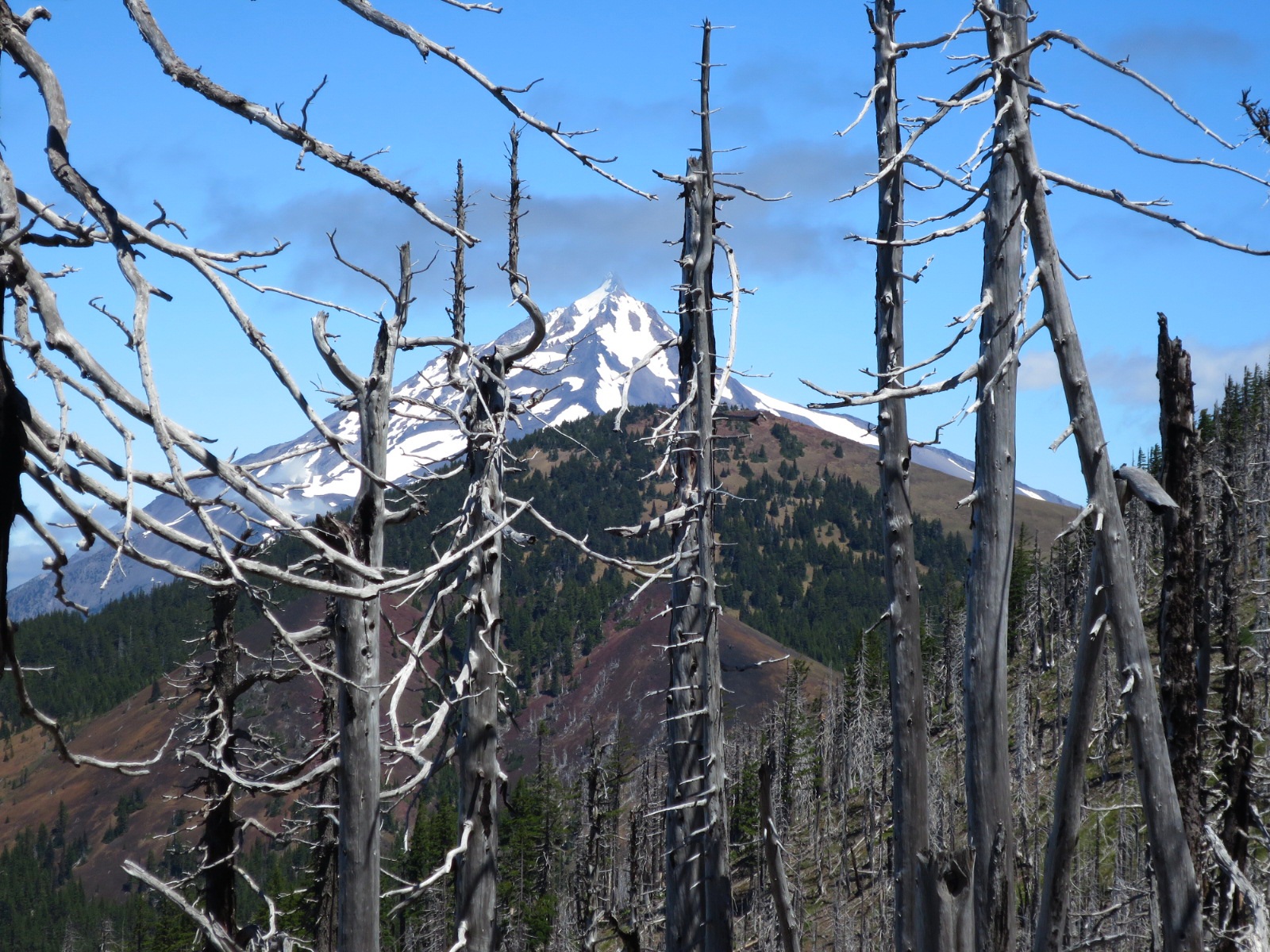 We stopped for a late lunch with a view of Mt Jefferson. The mosquitoes found us quickly so we ate as we swatted them away. We wondered outloud about the purpose of mosquitoes. None of us had a good answer.