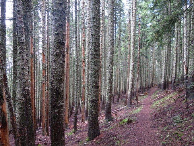 The trail was pretty flat for a few miles then dropped steeply down toward Tacoma Pass.