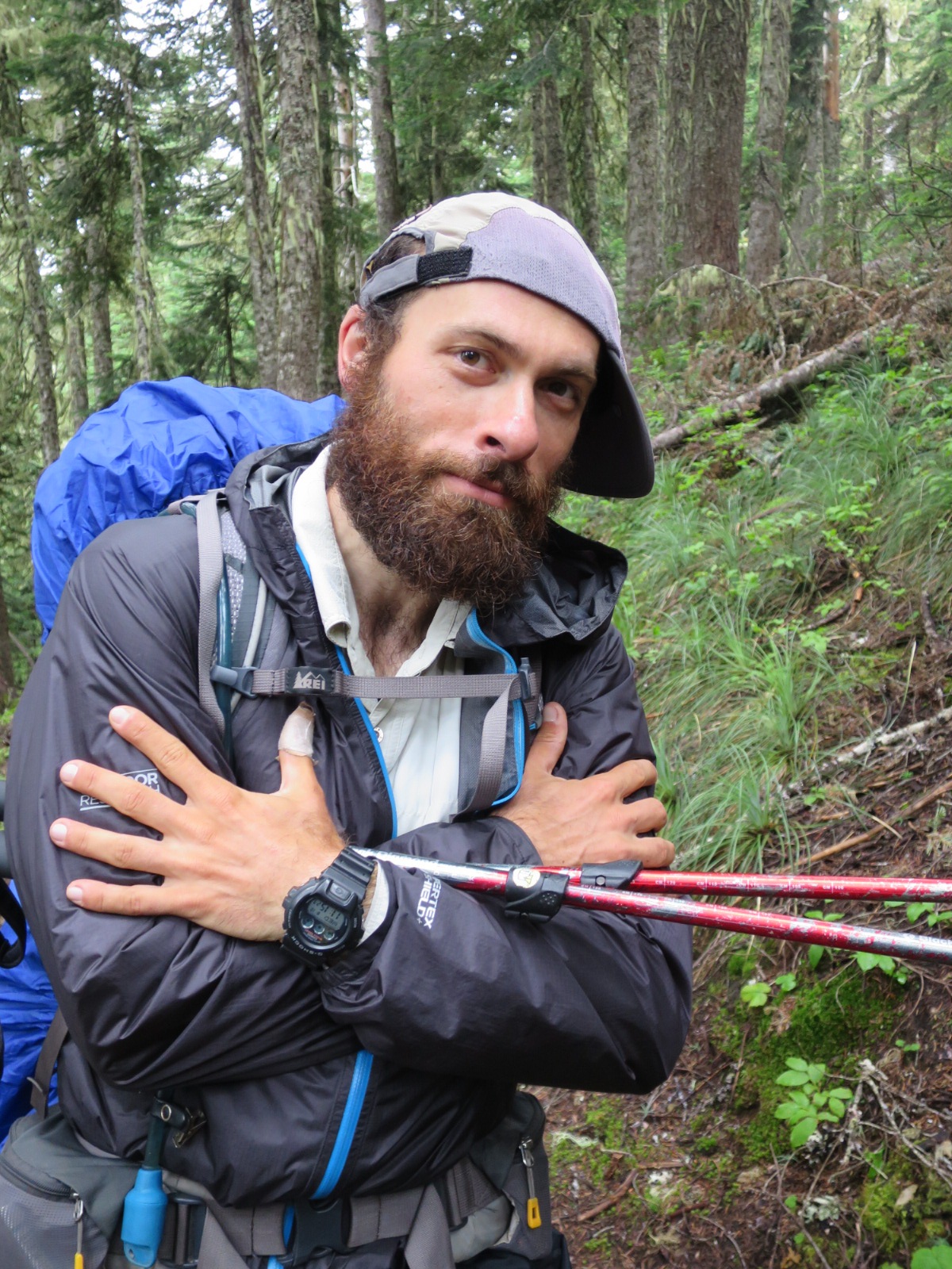 It wasn’t raining but we experienced periods of active fogging. And our feet got soaked in the first hour from the wet brush alongside the trail.