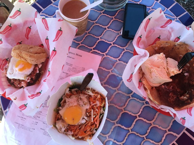 Audrey, who is 6 months pregnant, fit right in with us hikers as she ordered the Avalanche pancake – bacon inside a pancake with ice cream on top.