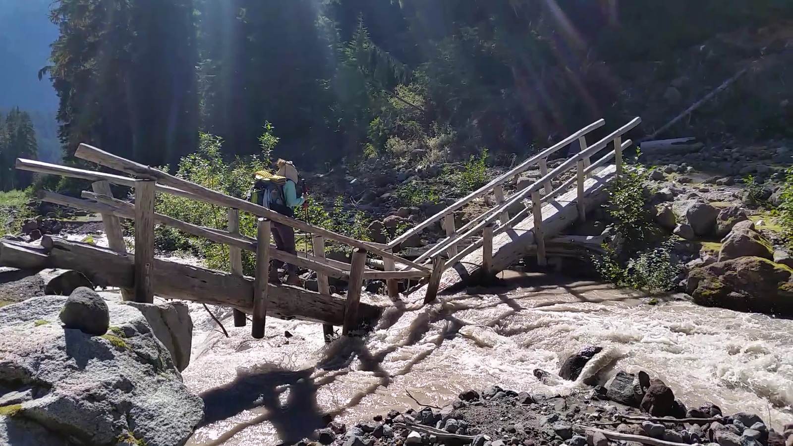 We crossed a raging glacier melt river on a broken bridge. Andy remembered seeing pictures of said bridge in blogs over the years. It was a fun challenge for both of us.