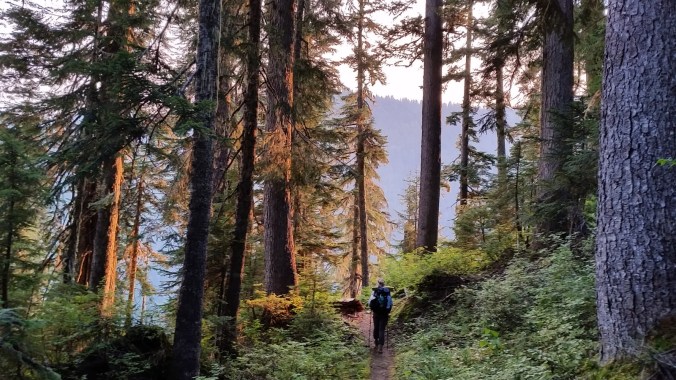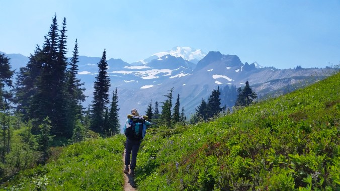 We traded stories about the trail and our experiences, and introduced him to thimbleberries. His feet hurt because he hadn’t hiked much before this trip, so we parted ways when he stopped to soak them in a creek.