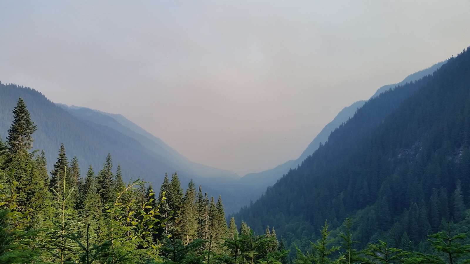 When we left camp around 6:20am the air was smokey and many of the glorious mountains surrounding us were blanketed by haze.