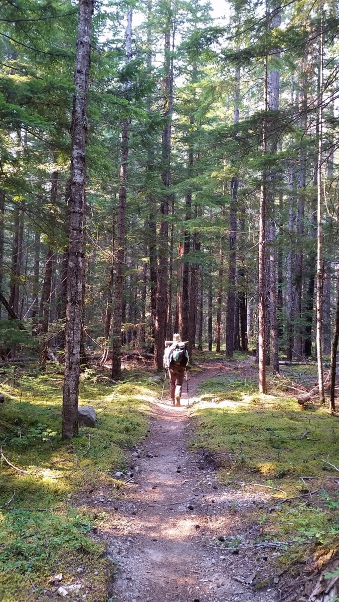 Halfway down our worries were relieved since the switchbacks were gently graded. The miles came easy, except for the times when we had to steeply ascend or descend use trails to get around downed trees.