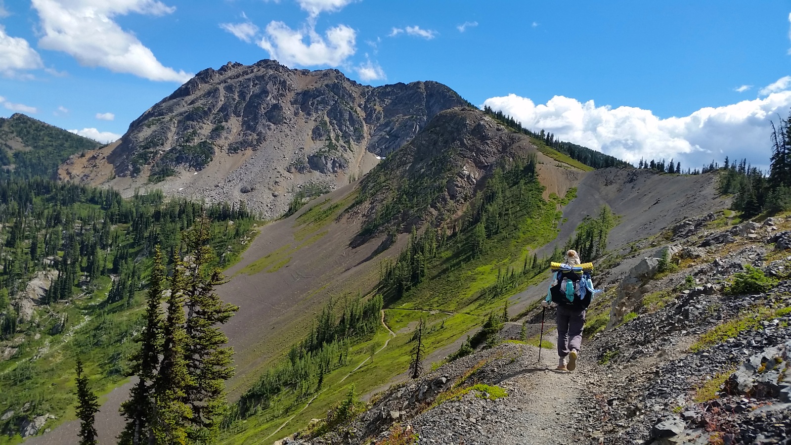 Our guidebooks warned us to not be tempted to take the old, unmaintained PCT as it’s treacherous. We stuck to the main trail and enjoyed the views between Rock Pass and Woody Pass.