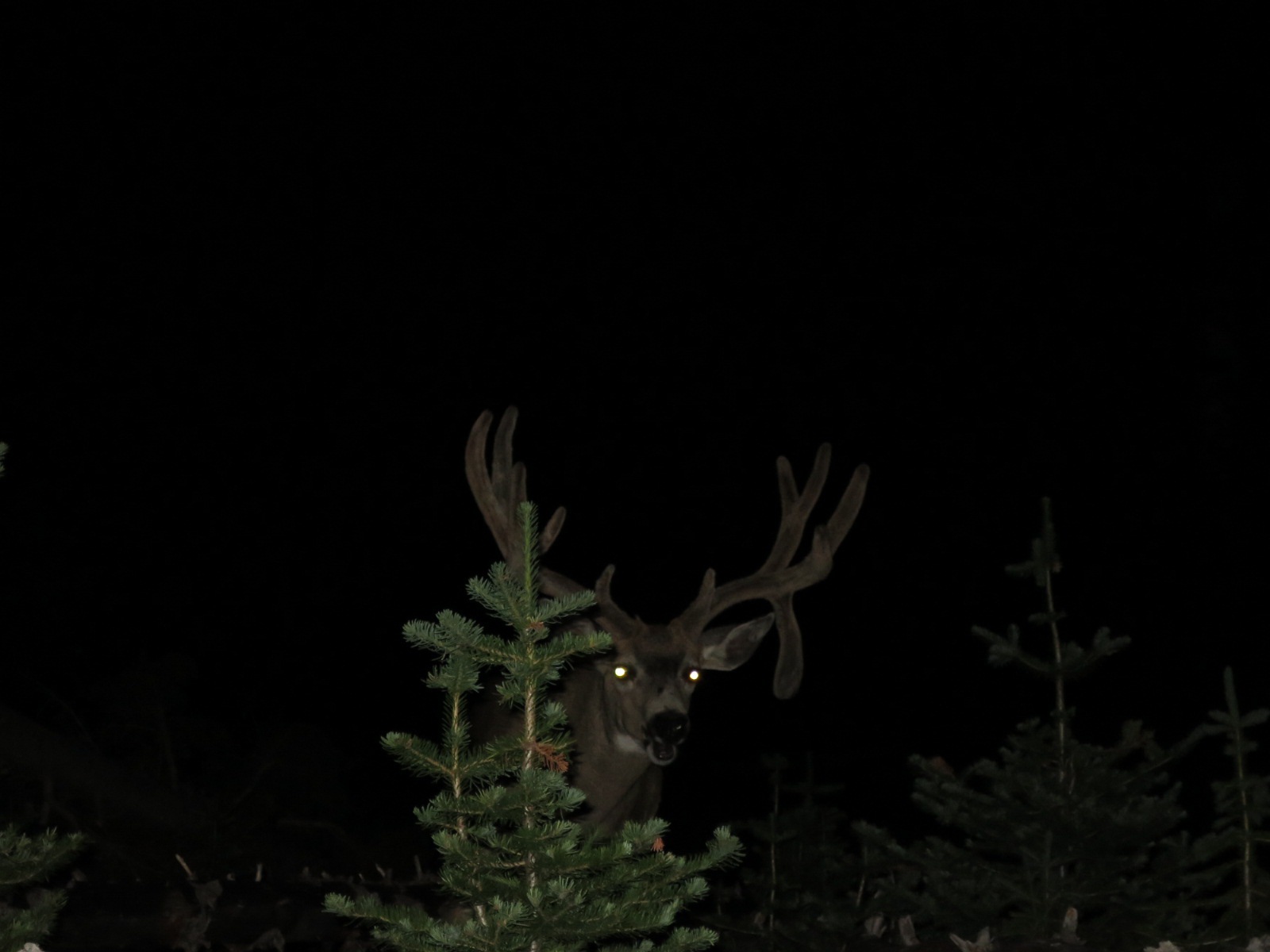 He pulled out his headlight and not even 10 feet from our tent was a creature with large, beautiful antlers. We think it was an Elk but it may have been a buck. It didn’t seem concerned or interested in us – just the bushes around our tent.