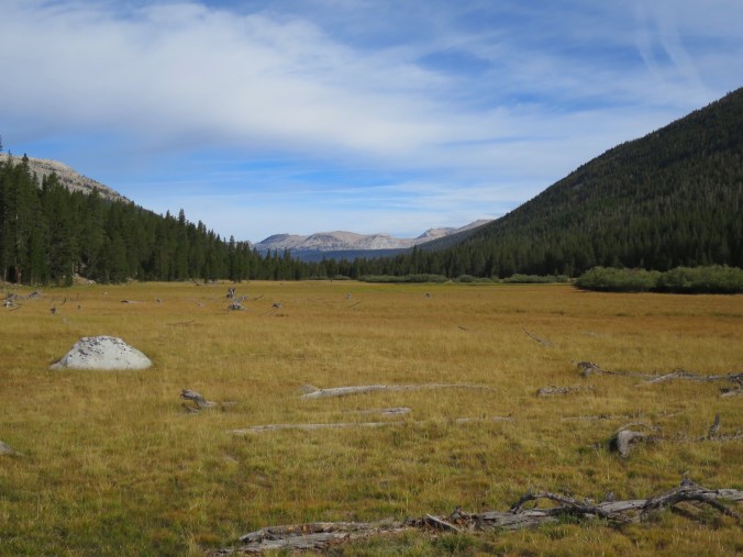 The three of us walked almost 5 miles to a beautiful meadow where the Lyell Fork once again intersects the trail. This is one of Laurie’s favorite places. In fact, she has talked about wanting to get married there!