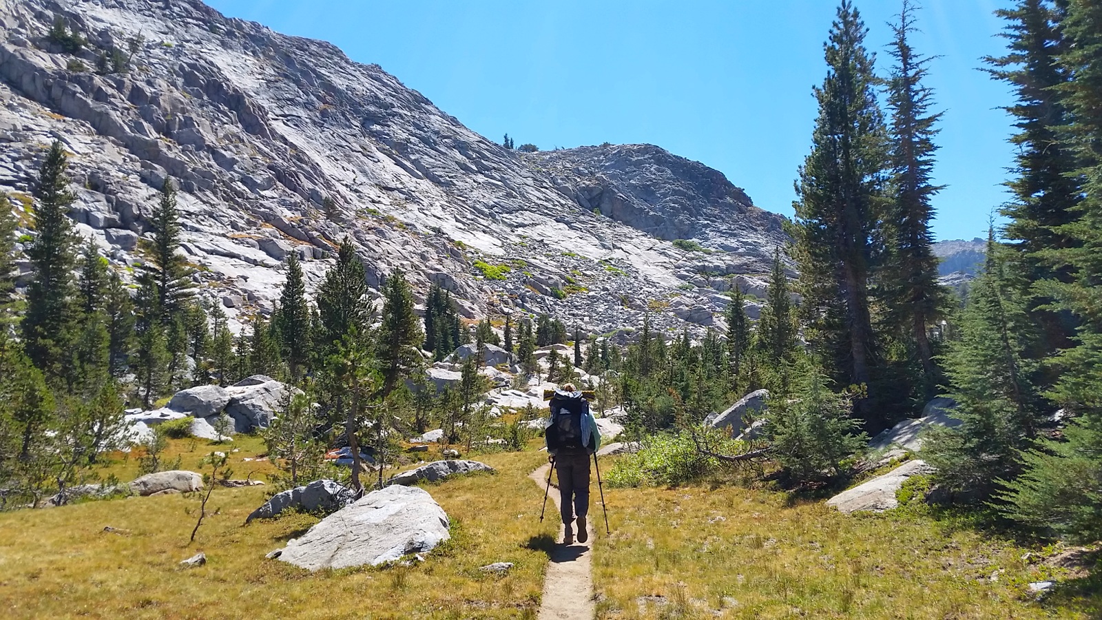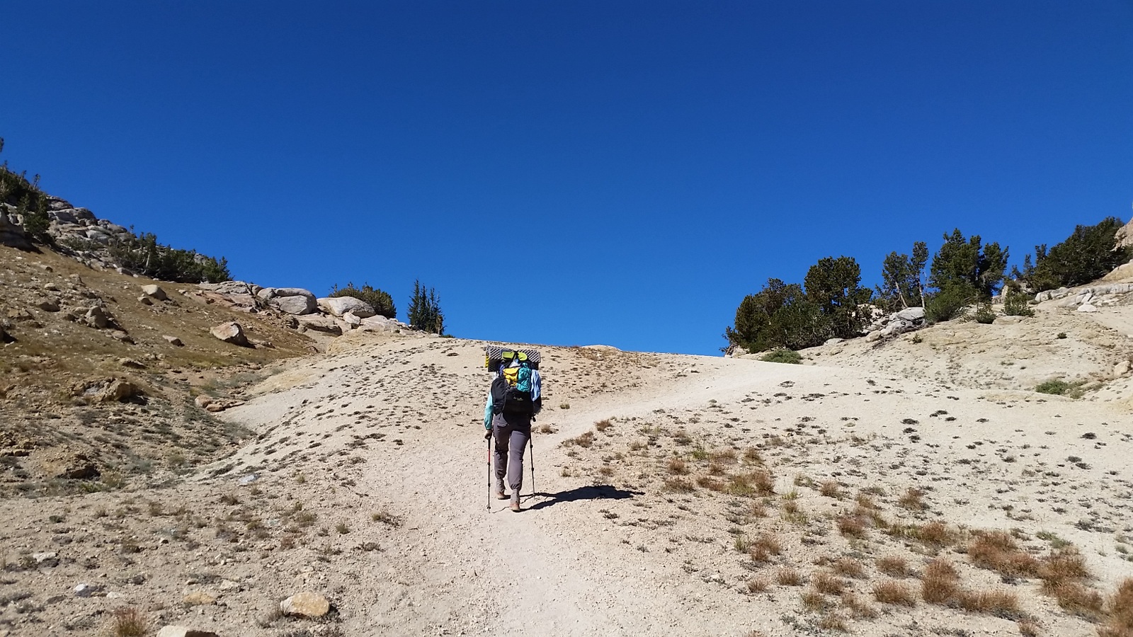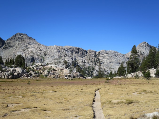 The climb up to Benson Pass was beautiful but unrelenting. We walked though green and yellow meadows, finally ending in a basin of granite and yellow grass. The marmots were the only other creatures we saw all morning.
