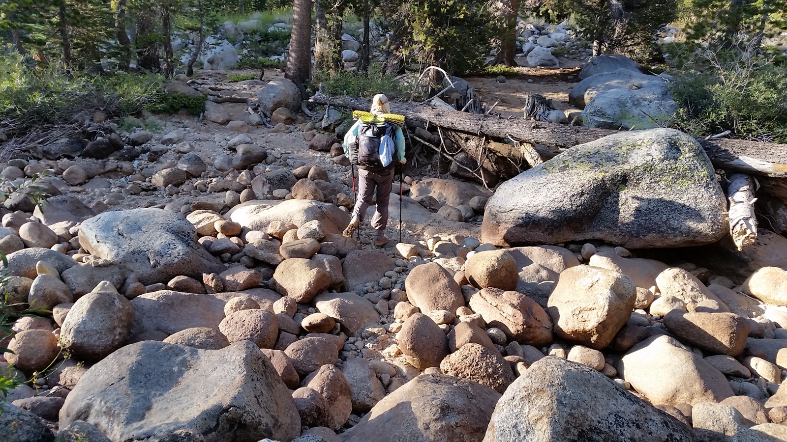 The rocks made for slow going as we navigated up big rock steps and down the steep granite cobblestone trail.