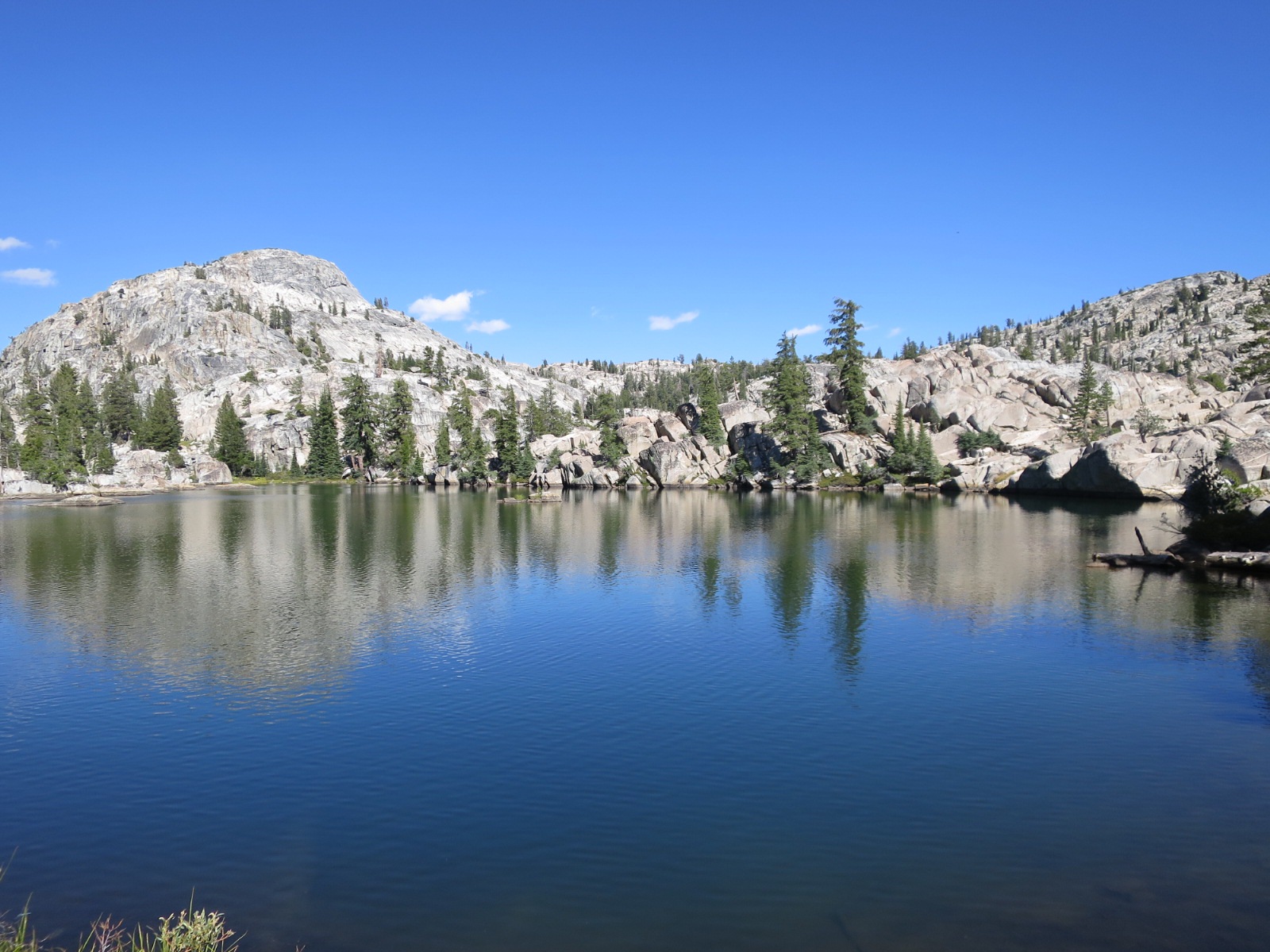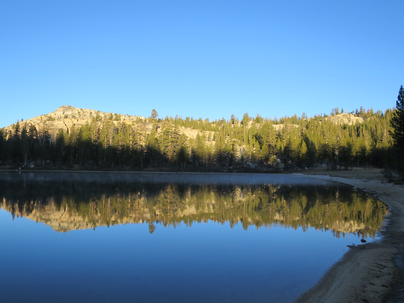 We were walking by 7am. The sun was out but had not yet hit our campsite or Miller Lake. The meadow next to the lake was dusted in white and there were ice crystals in the sand.