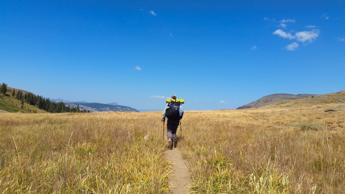We dropped down off the rocky ridge into a large green and yellow basin. The Aspen trees are starting to turn and the bright yellow leaves made us smile. We have walked through 3 seasons.