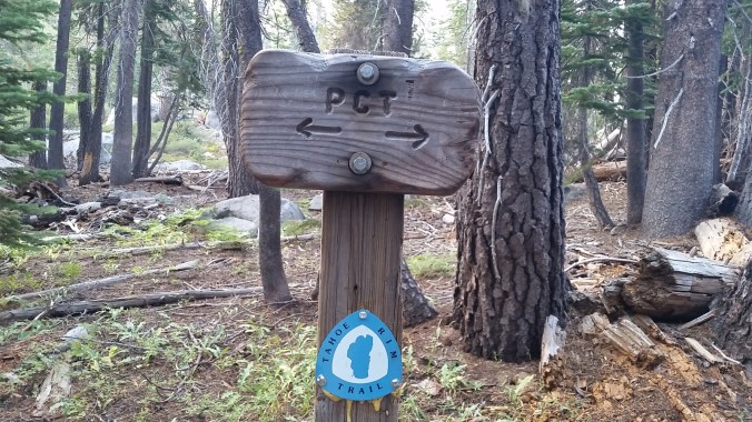 Here the PCT joined the Tahoe Rim Trail. The trial continued on for 2 flat miles before climbing again to Showers Lake.