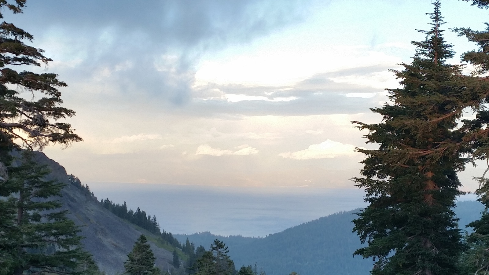 5pm – 6pm = ?? got distracted, took side trail for views, sent text messages, caught up with The Grateful Red whom we first met at Lava Spring in Washington.