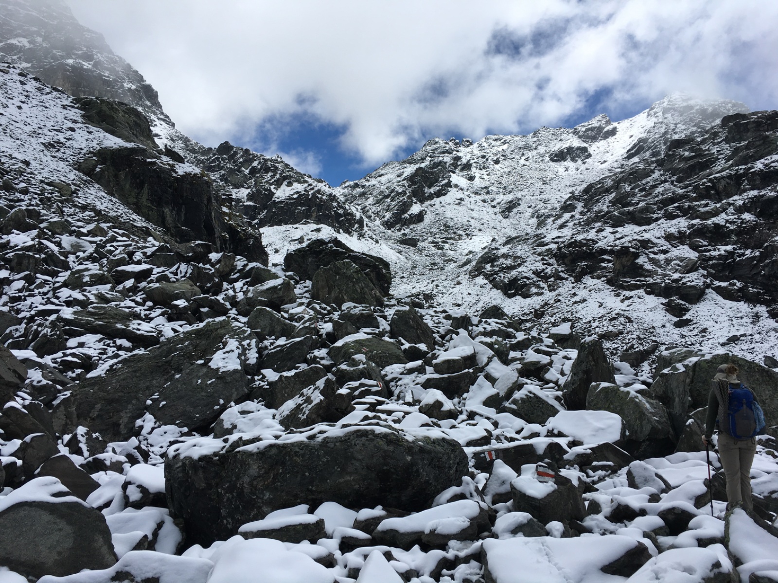 From here it was a series of smaller ups and downs before our final ascent to Col de Plafleuri. The walking was easier because of the lack of snow and exposure. Both of our spirits lifted as did our speed.