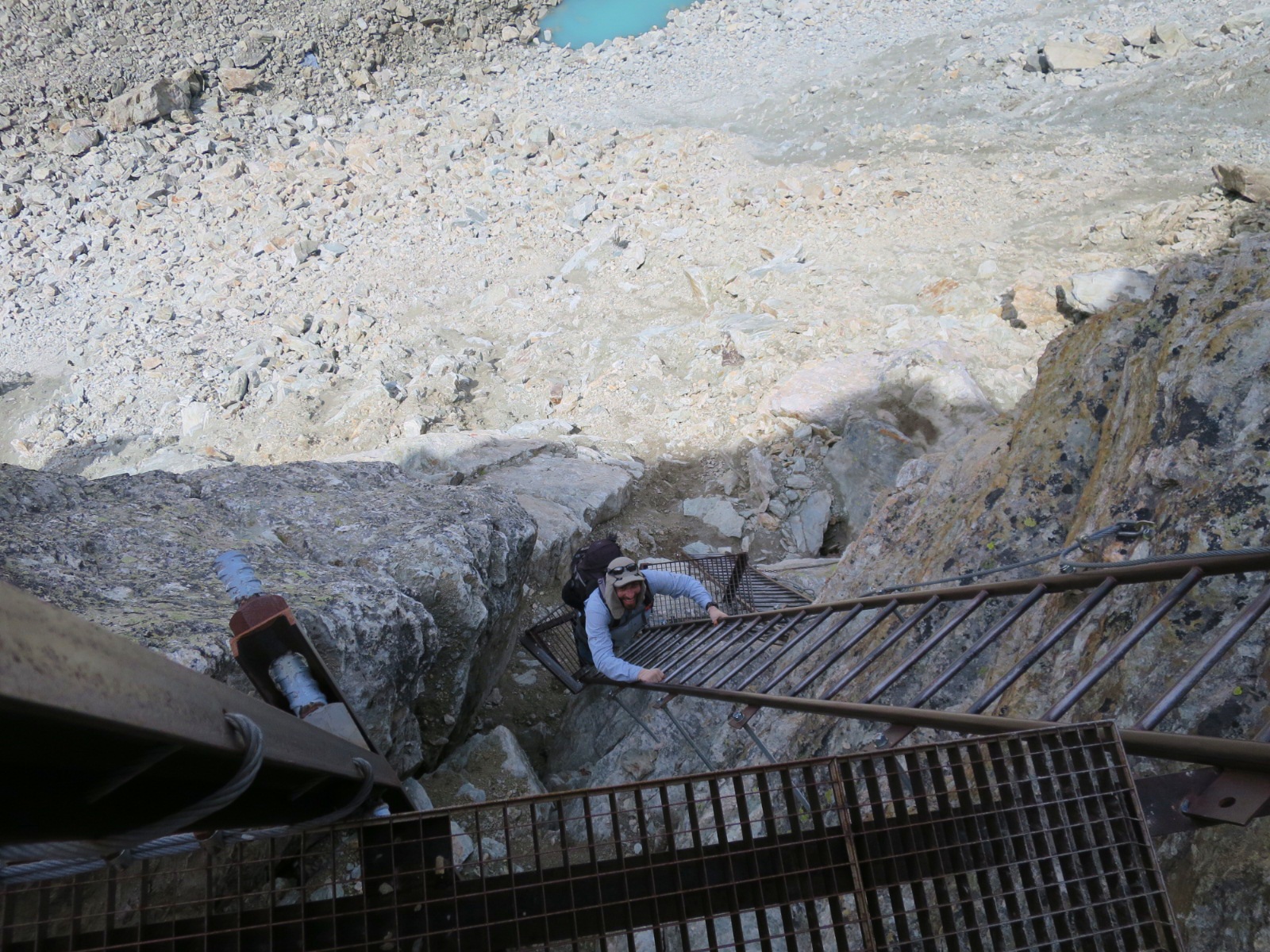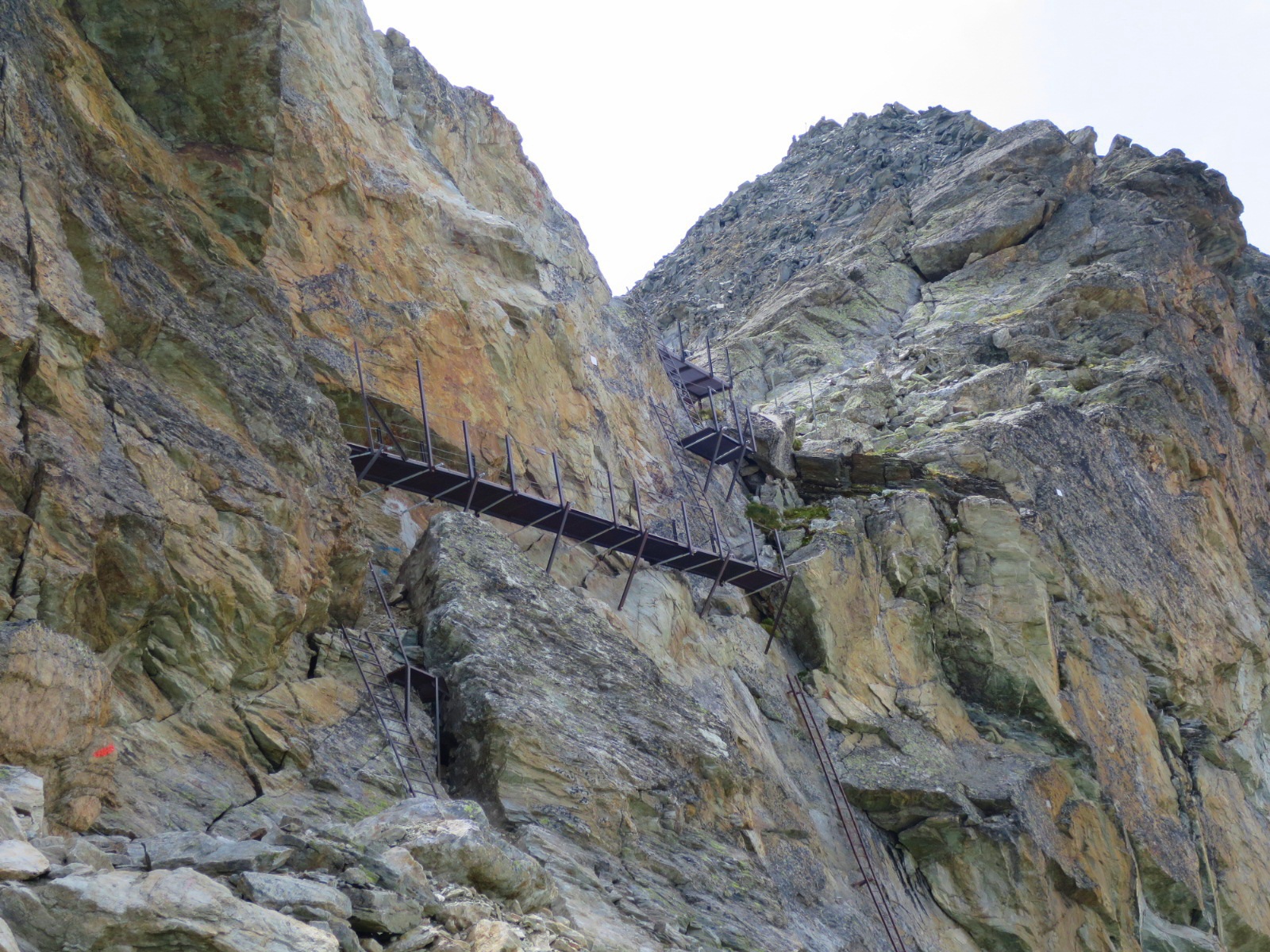 This portion of the trail is a ‘choose your adventure’ type of scenario. One can continue to scramble up loose rocks and boulders toward the Col de Riedmatten or climb a series of 4 ladders to Pas de Chevres.
