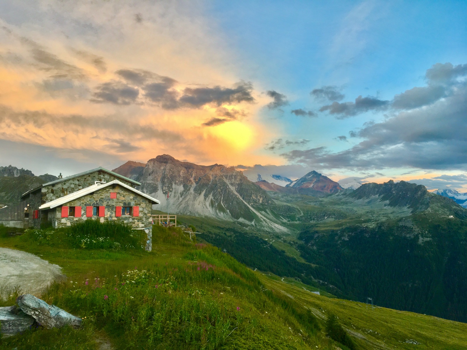 Incredible sunset at Cabane Bella Tola