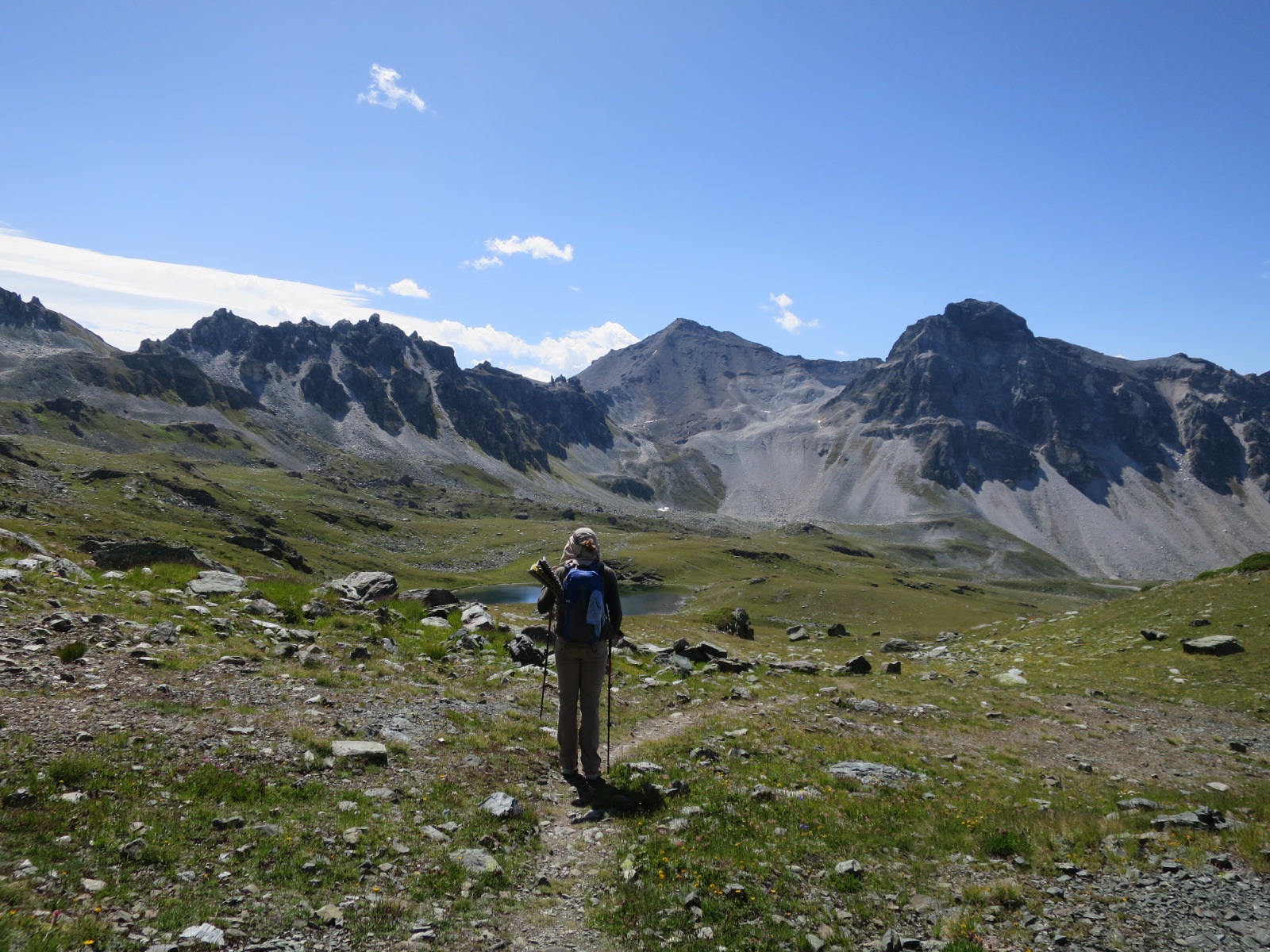 We got the junction where the trail to the peak of Bella Tola veered steeply off to the left. It was 9 am. The sky was partly cloudy but the forecast for this afternoon called for thunderstorms yet again. “Afternoon” is vague so we had to rely on our inner barometers.