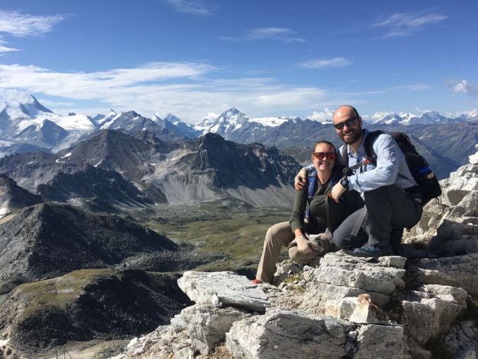 By 10:00am we were at the top of Bella Tola. We shared the summit with 3 Swiss with whom we swapped pictures and Laurie practiced her Swiss German. They helped us identify each of the major peaks on the horizon.