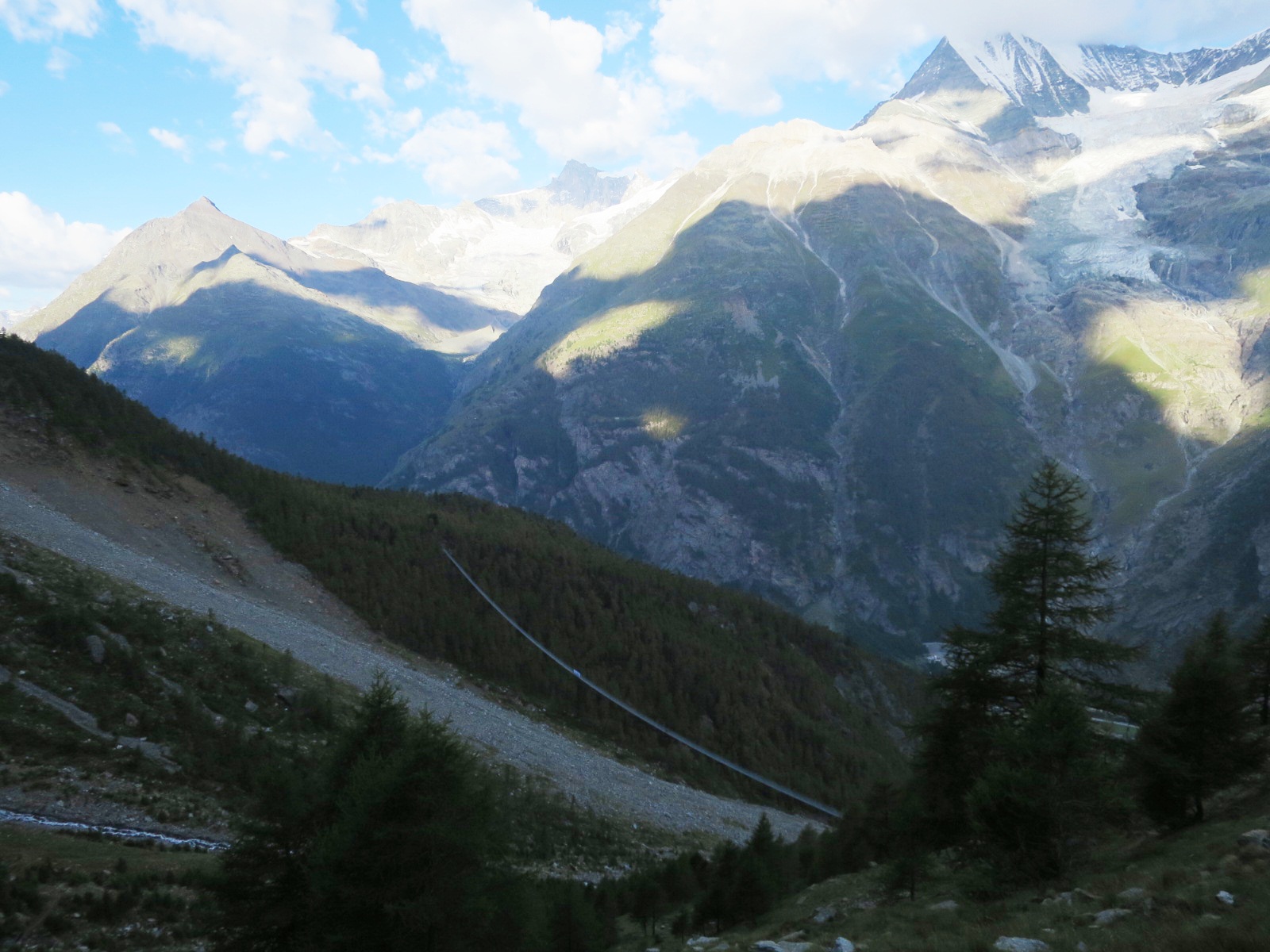This massivs bridge exists because the valley it crosses is notorious for rockfall that takes out the trail and previous bridges regularly. So the Swiss went big hoping it will be a permanent solution to an ongoing problem.