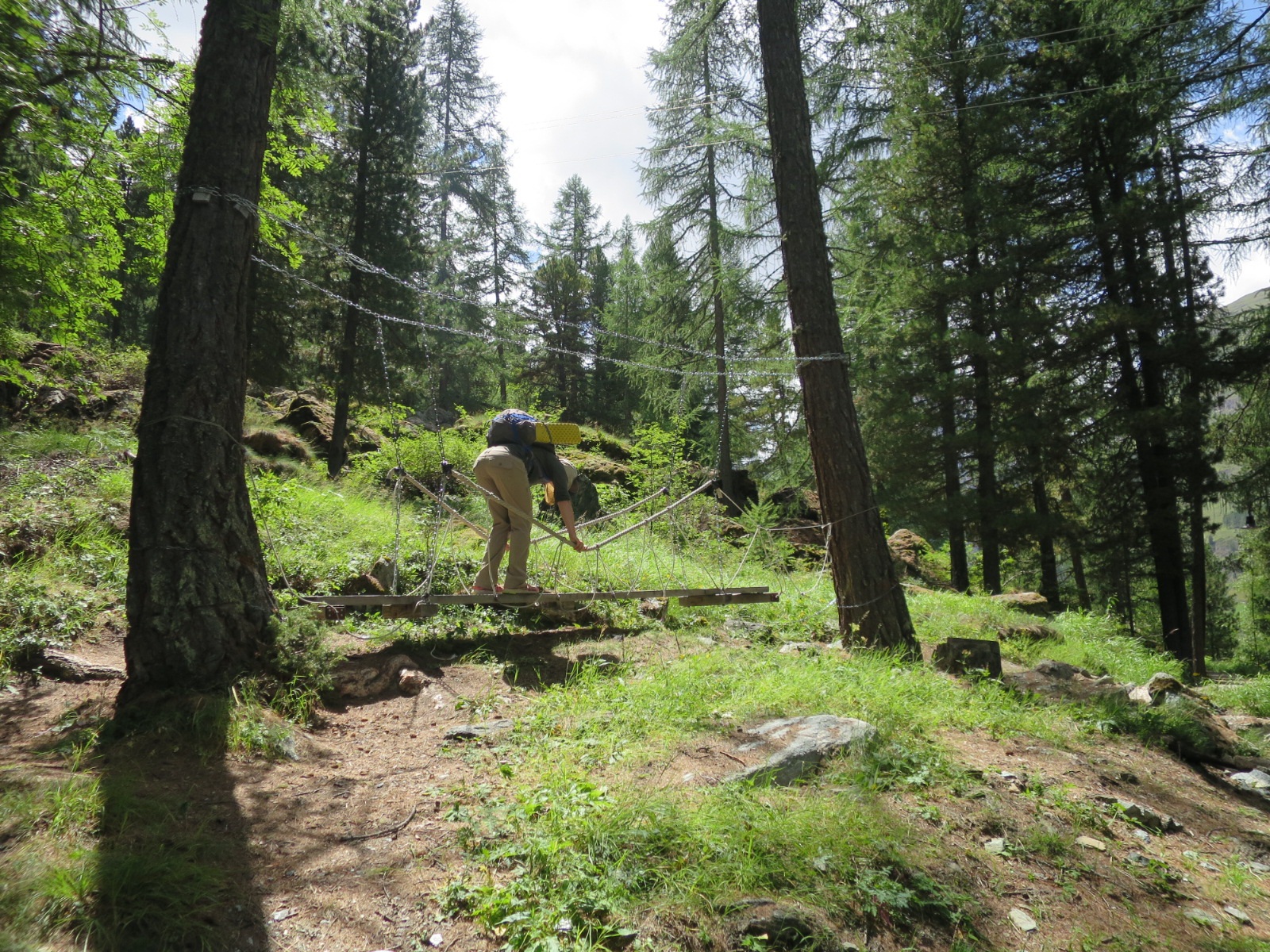 Under worryingly dark clouds, we left our last hut of the trip and descended toward a new bridge that bypasses an entire valley.