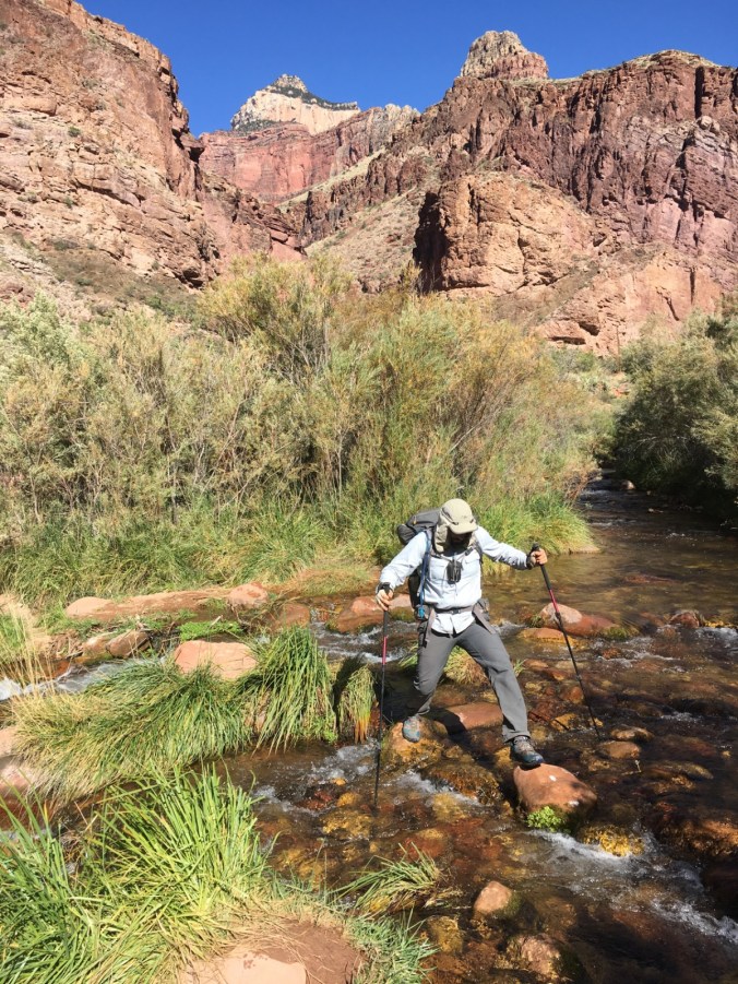 The students stayed behind to get water at the junction while we kept truckin’ along. We couldn’t believe how much water there is in the Grand Canyon. We followed Pipe Creek for a mile or so before ascending through another canyon.