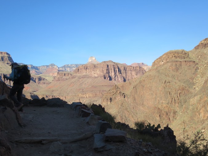 While everyone we were hiking with stopped for water at Manzanita, we kept going and enjoyed quite a few miles of trail all to ourselves. We learned on the PCT that watering holes in the desert attract many hikers, so we took a bit more water at Supai Tunnel to bypass this one. It worked out beautifully!