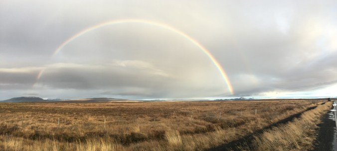 As we drove to Gullfoss, one of the most popular, scenic and easy to get to waterfalls, we admired as the clouds started to break and more and more glaciers popped into view. A vibrant rainbow appeared making the views even more majestic. We both felt giddy.