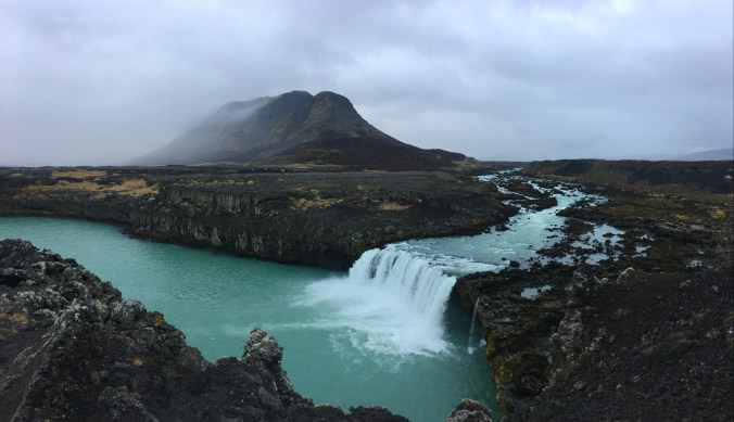 We looped around through a barren moons scape, stopping at Thjofafoss. It was absolutely stunning and worth the visit. Even in low light and cloudy skies overhead the water was a beautiful green color.