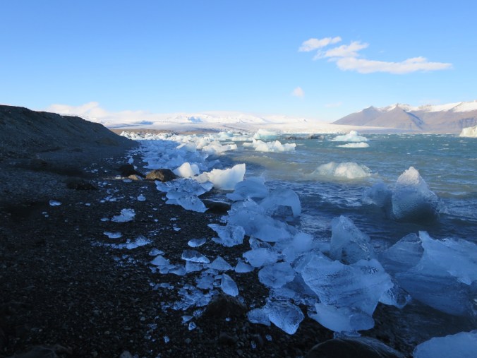 We joined the crowds at Black Sand Beach where icebergs lay like seals on the dark sand.