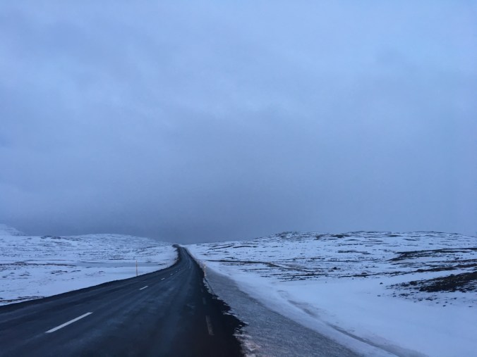 Around 3:30pm, as we crossed through Egilsstadir, the rain let off and the skies became a bit lighter.