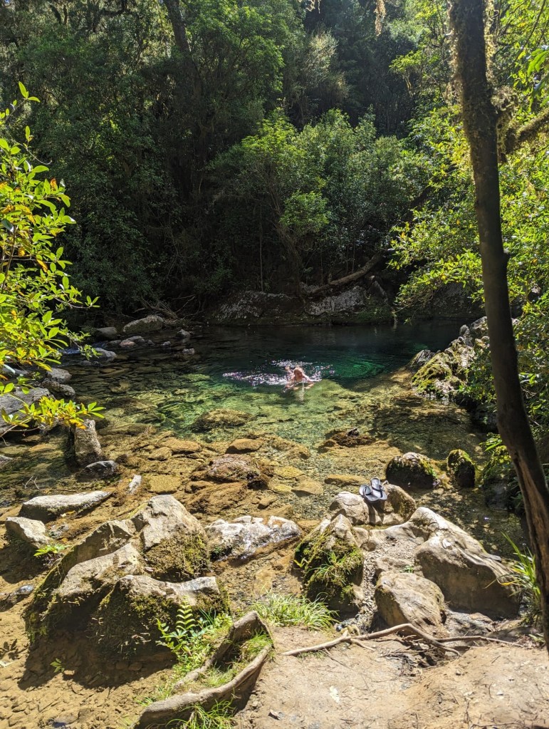 From there we drove to Riuwaka Resurgence. It was a pretty and short walk to a clear, deep and COLD pool. Each of the kids dipped their feet in the water and Laurie gradually built up the courage to take a dip.