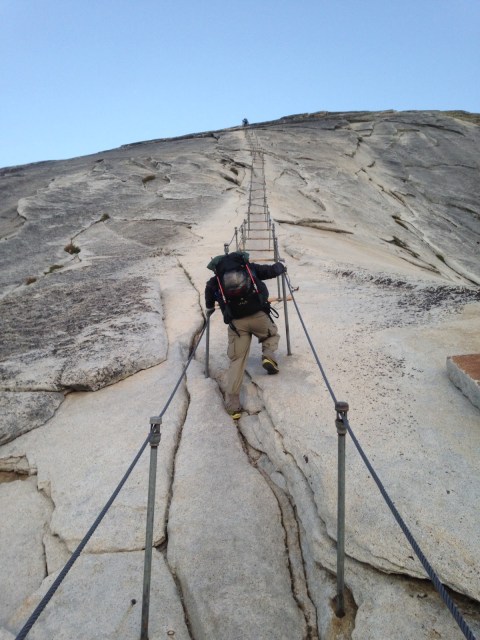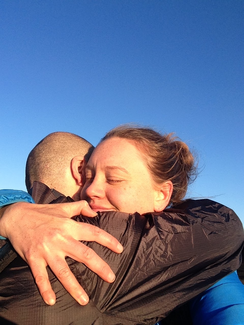Once at the top we stayed long enough to take one picture before turning our backs to the wind and heading down.