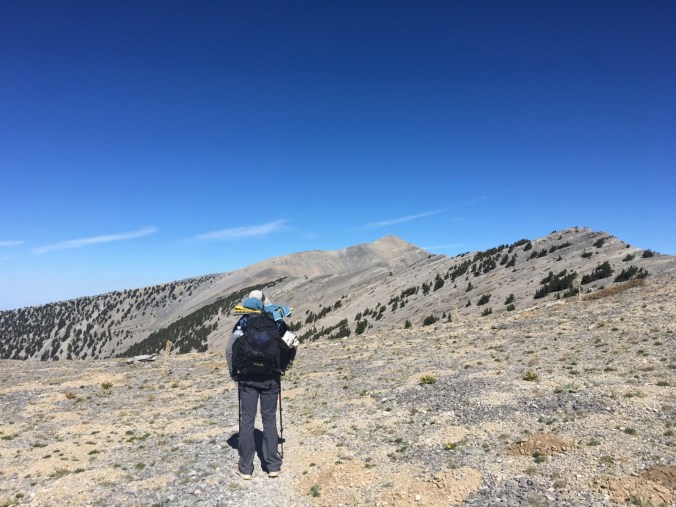Once at the top we stayed long enough to take one picture before turning our backs to the wind and heading down.