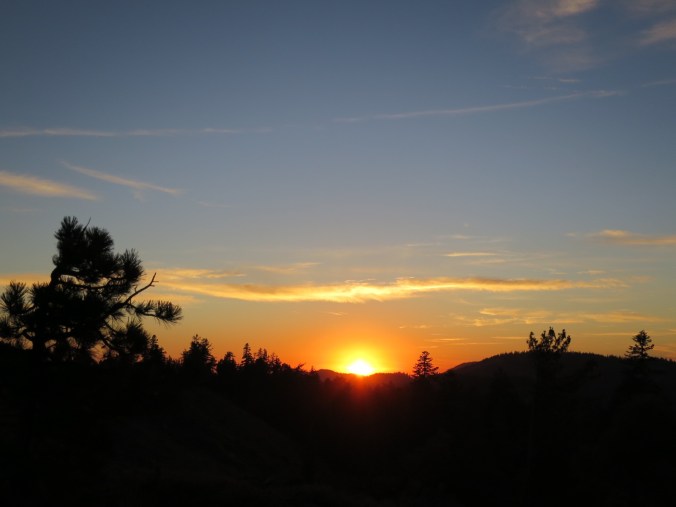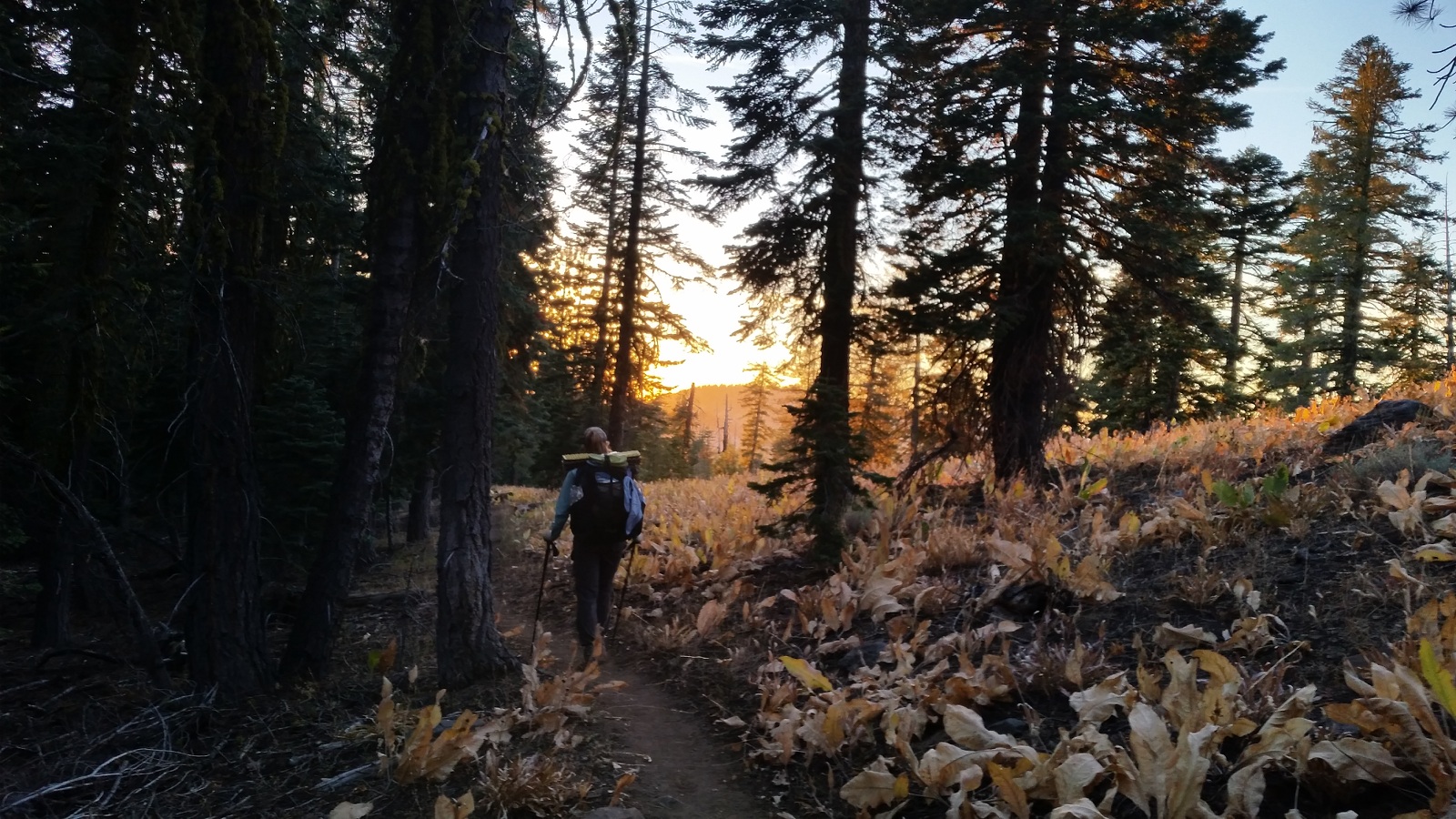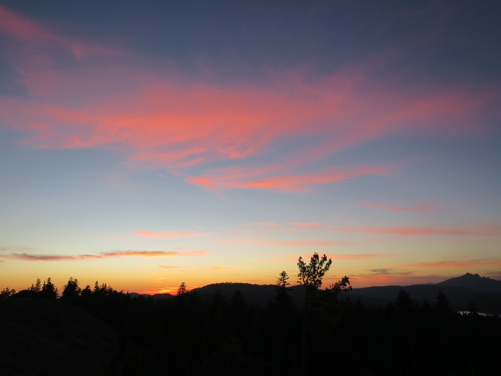 We had intended to hike to an old logging road but found a nice camp spot on top of a hill. The air was warm and we watched the sun set from our sits pads, leaning against our backpacks.