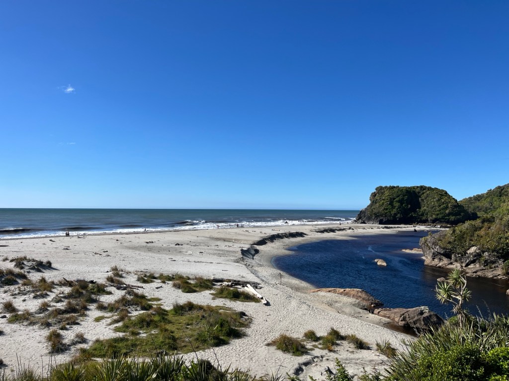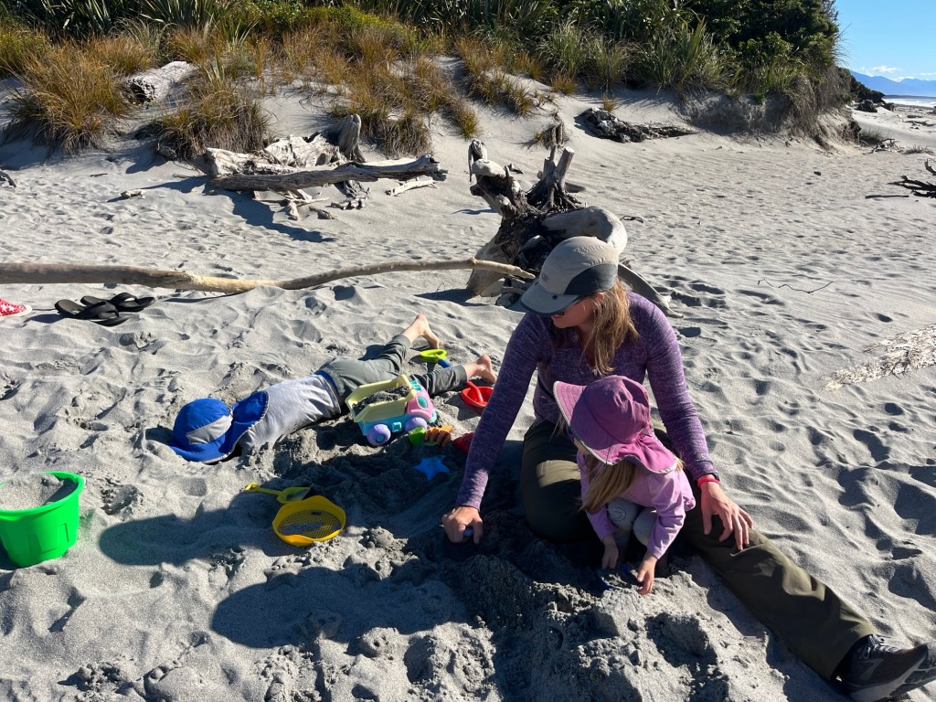 Around 11am we finally left camp. Our first stop was 20 minutes away at Māori Beach. The kids were excited to dig with their shovels and make sandcastles.