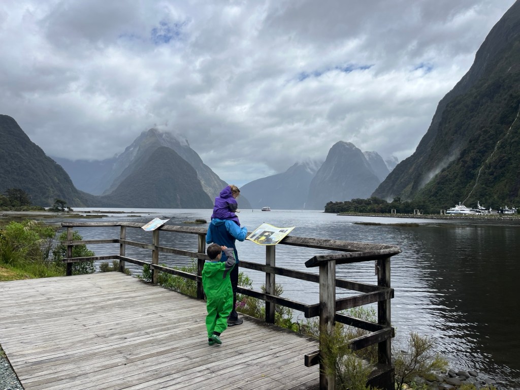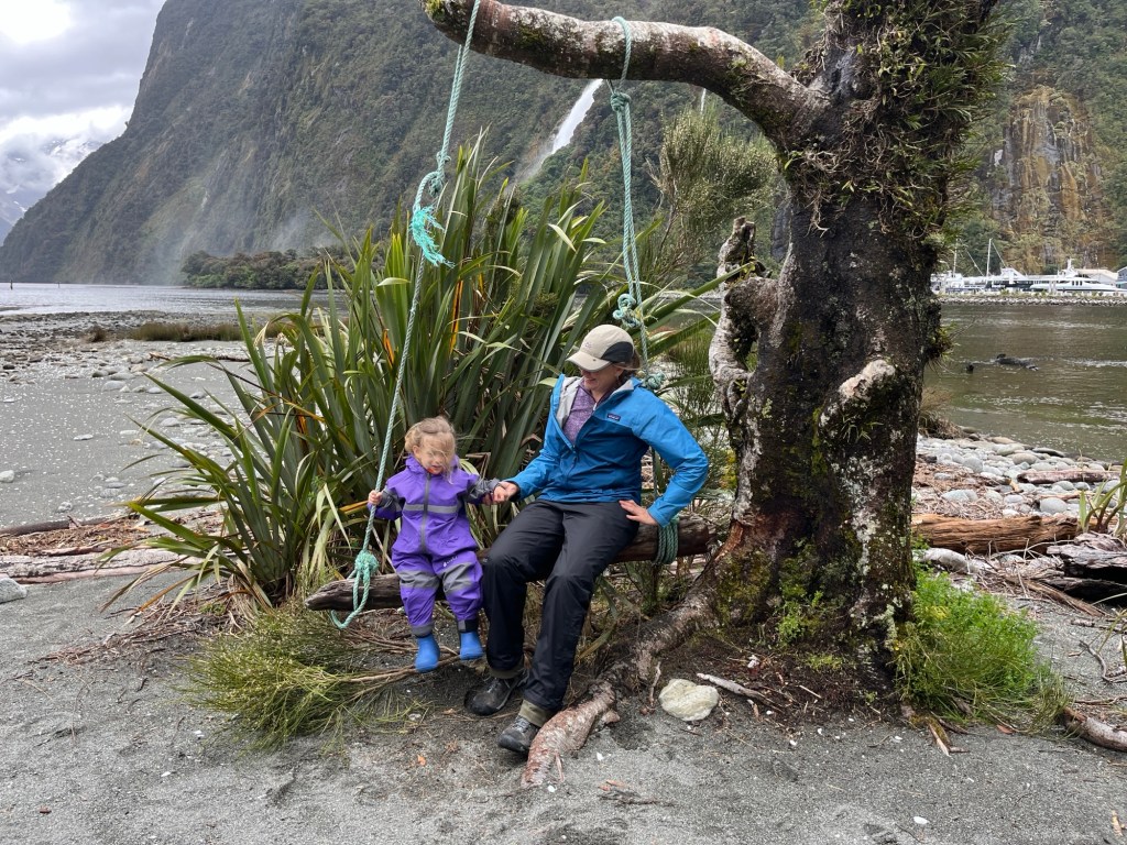 Before we knew it, we were back at the harbor. We were pleased with how well the kids did on the boat. Laurie thought this was their first boat ride but Miles corrected her that we were all on a fishing boat last summer in Alaska. We disembarked and went in search of the Milford Sound swing.